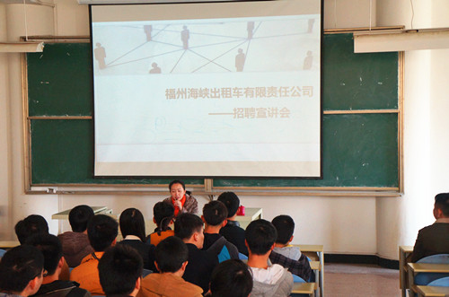 2015年12月30日,在一號樓401召開了福州海峽出租車限公司招聘會。本次招聘會的主要目的是為了招聘更多的汽車專業(yè)的優(yōu)秀應(yīng)屆畢業(yè)生加入福州海峽出租車有限公司。 招聘會開始,同學(xué)們首先觀看了福州海峽出租車有限公司特別準(zhǔn)備的宣傳片,之后公司的人員就介紹了福州海峽出租車有限公司的發(fā)展歷程、組織架構(gòu)、企業(yè)文化、對員工的要求以及福州海峽出租車有限公司為員工提供的發(fā)展等問題和學(xué)生們進行了分享,并且從集團的角度介紹了福州海峽出租車有限公司的概況、理念、人才策略以及管理培訓(xùn)生和崗位的具體招聘要求和發(fā)展通道,并結(jié)合自身經(jīng)歷跟學(xué)生們交流了成功的經(jīng)驗和心得。 同學(xué)們的積極性也非常的高,在招聘會進行的同時表達出強烈的求職意愿,在問答環(huán)節(jié)也很踴躍的舉手表達自己的想法,直至招聘會結(jié)束同學(xué)們?nèi)跃镁貌辉鸽x去。