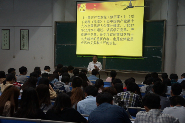 學(xué)習(xí)貫徹新黨章,爭當(dāng)合格好黨員 ——交通工程系舉行《中國共產(chǎn)黨章程》專題黨課學(xué)習(xí) 發(fā)布者:交通工程系黨總支 發(fā)布時(shí)間:2018-04-27 瀏覽次數(shù):1609 為深入學(xué)習(xí)宣傳貫徹黨的十九大精神,牢固樹立黨章意識,增強(qiáng)黨性修養(yǎng),2018年4月25日晚,我系于1號樓501教室舉行《中國共產(chǎn)黨章程》專題黨課學(xué)習(xí)。系部的(預(yù)備)黨員、積極分子和學(xué)生兩委干部參加了本次學(xué)習(xí)。 劉常勇副書記從修改黨章的重大意義、新寫入黨章的主要內(nèi)容、全面學(xué)習(xí)新黨章和如何貫徹落實(shí)新黨章四方面進(jìn)行全面講解,并強(qiáng)調(diào)全體黨員要認(rèn)真學(xué)習(xí)、自覺遵守、堅(jiān)決維護(hù)和真正應(yīng)用好黨章,切實(shí)增強(qiáng)“四個(gè)意識”,堅(jiān)定“四個(gè)自信”。 師生一致表示定會把黨章各項(xiàng)規(guī)定與義務(wù)落實(shí)到具體行動上,在工作學(xué)習(xí)中發(fā)揮模范帶頭作用,踐行“立德樹人”的根本使命。 (圖文/陳杰)