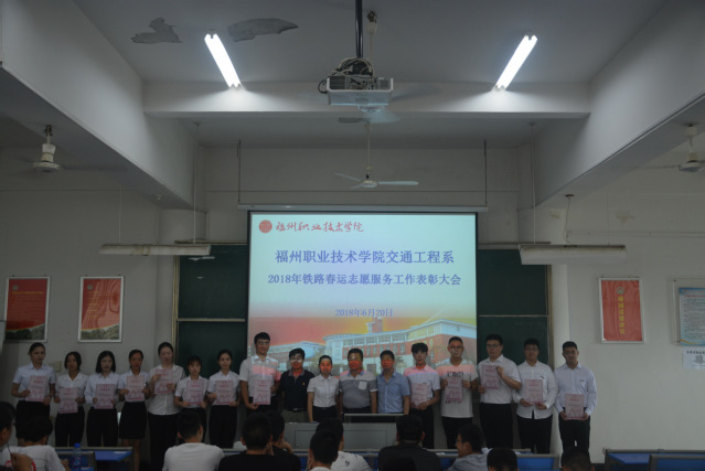 發(fā)布者: 發(fā)布時間:2018-06-21 瀏覽次數(shù):1525 2018年6月20日下午2點,交通工程系在1#401舉辦2018年鐵路春運志愿服務工作總結表彰大會。福州火車站團委劉娜書記、系部黨政領導、專業(yè)教師以及2017級城軌專業(yè)同學參加此次表彰大會。 劉娜書記宣讀表彰決定,授予“福州職業(yè)技術學院交通工程系志愿者協(xié)會”為2018年鐵路春運志愿服務“先進集體”稱號,授予賴青州等30名同學為2018年鐵路春運志愿服務“優(yōu)秀志愿者”。劉娜書記和系領導為獲獎集體和個人頒獎,王敏毅院長和劉常勇書記分別做總結發(fā)言。 今年是交通工程系第7年服務福州火車站春運,通過志愿者服務工作,將專業(yè)技能、企業(yè)需求、志愿服務融為一體,全方位育人。 (圖文/周芳娟)