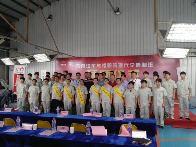 發(fā)布者: 發(fā)布時(shí)間:2018-07-05 瀏覽次數(shù):2055 7月2日,交通工程學(xué)院汽車制造與裝配技術(shù)專業(yè)現(xiàn)代學(xué)徒制拜師儀式在東南(福建)汽車工業(yè)有限公司舉行。會(huì)議邀請了福州市工會(huì)朱主席、劉松林副校長、王敏毅主任、劉常勇副書記以及汽車專業(yè)老師在內(nèi)共計(jì)70余人參加了拜師儀式。拜師儀式由東南汽車盧娘招經(jīng)理主持,會(huì)上劉校長指出開展現(xiàn)代學(xué)徒制人才培養(yǎng),是深化產(chǎn)教融合、校企合作,推動(dòng)職業(yè)教育改革創(chuàng)新的一種重要形式;師傅們發(fā)揚(yáng)“傳、幫、帶”的優(yōu)良傳統(tǒng),把技能毫無保留地傳授給徒弟們,實(shí)現(xiàn)校企共贏。 儀式上,現(xiàn)代學(xué)徒制班的學(xué)生們與東南汽車六位技術(shù)長進(jìn)行了師徒結(jié)對。學(xué)徒代表集體宣誓,贈(zèng)拜師帖,鄭重地向師傅鞠躬行拜師禮,師傅向徒弟答禮并贈(zèng)送徽章。拜師禮成后,師徒代表分別作了表態(tài)發(fā)言。 (圖文/林騰飛)