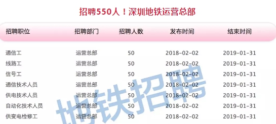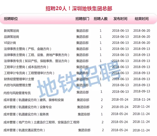 深圳地鐵招聘公告