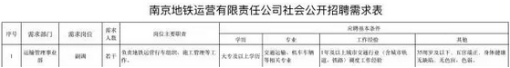 南京地鐵運(yùn)營公司社會(huì)招聘部分生產(chǎn)崗位公告