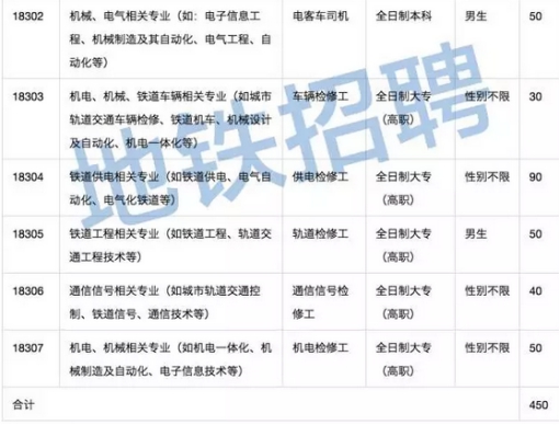 2018屆全日制大專(高職)應(yīng)屆畢業(yè)生,其中電客車司機(jī)崗位(18302)招收2018屆全日制本科應(yīng)屆畢業(yè)生。