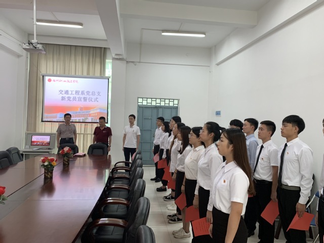 2019年7月5日,交通工程系在一號教學(xué)樓系部會議室開展“交通工程系新黨員宣誓儀式”。參加活動的領(lǐng)導(dǎo)有福州職業(yè)技術(shù)學(xué)院黨委委員、副校長劉松林同志,交通工程系黨總支書記劉常勇同志。