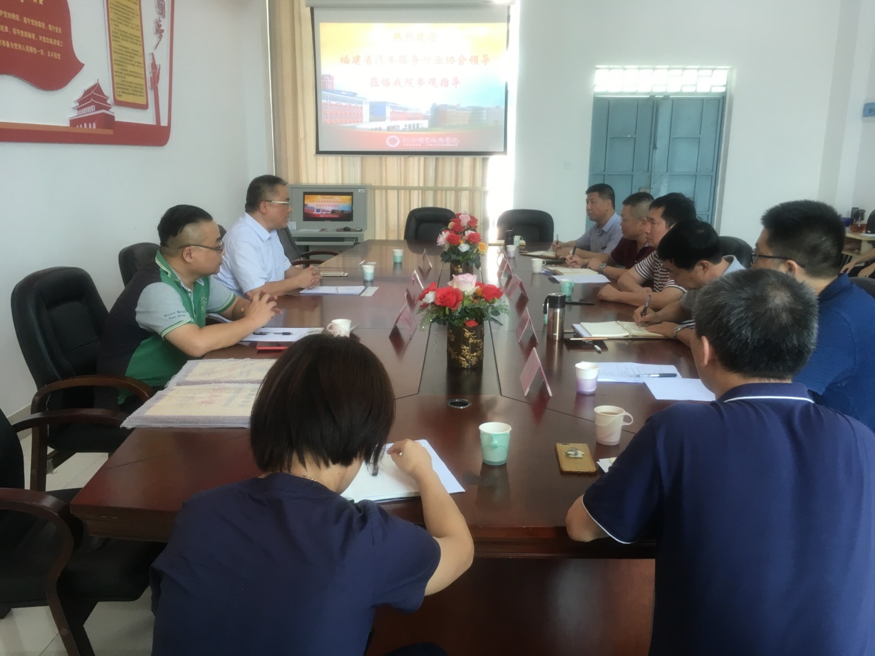 2019年9月9日福建省汽車服務行業(yè)協(xié)會鐘石明會長、程元泉秘書長一行來我校交通工程學院考察座談。座談會在交通工程系會議室舉行,劉松林副校長、交通工程學院領導以及汽車專業(yè)群三位專業(yè)主任參加會議。