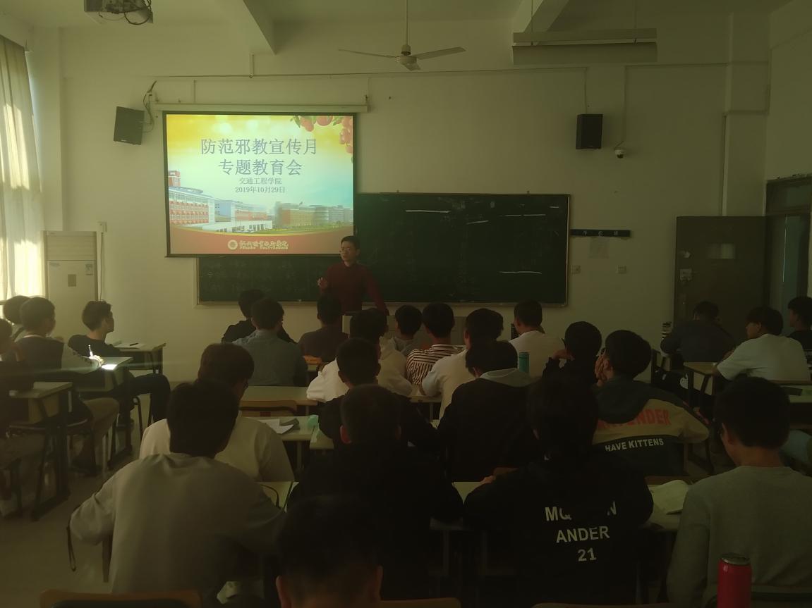 發(fā)布者: 發(fā)布時間:2019-10-31 瀏覽次數(shù):230 為了樹立正確的世界觀、人生觀、價值觀,提高學(xué)生防范、識別和抵制邪教的能力,交通工程學(xué)院開展了“崇尚科學(xué),拒絕邪教,共建和諧校園”主題宣傳活動。 本次防邪教安全月活動,形式多樣,內(nèi)容豐富。陳宇鑫輔導(dǎo)員通過主題班會等形式讓學(xué)生認(rèn)識到邪教是散布迷信邪說等手段迷惑、蒙騙他人,危害社會的非法組織。通過觀看視頻的形式重點(diǎn)開展憲法、刑法、國家安全法等法律以及相關(guān)行政法規(guī)有關(guān)邪教規(guī)定的宣傳讀解。通過宣傳欄、班級群等轉(zhuǎn)發(fā)反邪教材料,營造校園抵制邪教的濃厚氛圍。 通過開展活動,使師生們進(jìn)一步認(rèn)清了邪教的本質(zhì),提高廣大師生對反邪教意識,增強(qiáng)了防范和抵御邪教侵害的能力。 (陳宇鑫/文 鄭冰玉/圖)