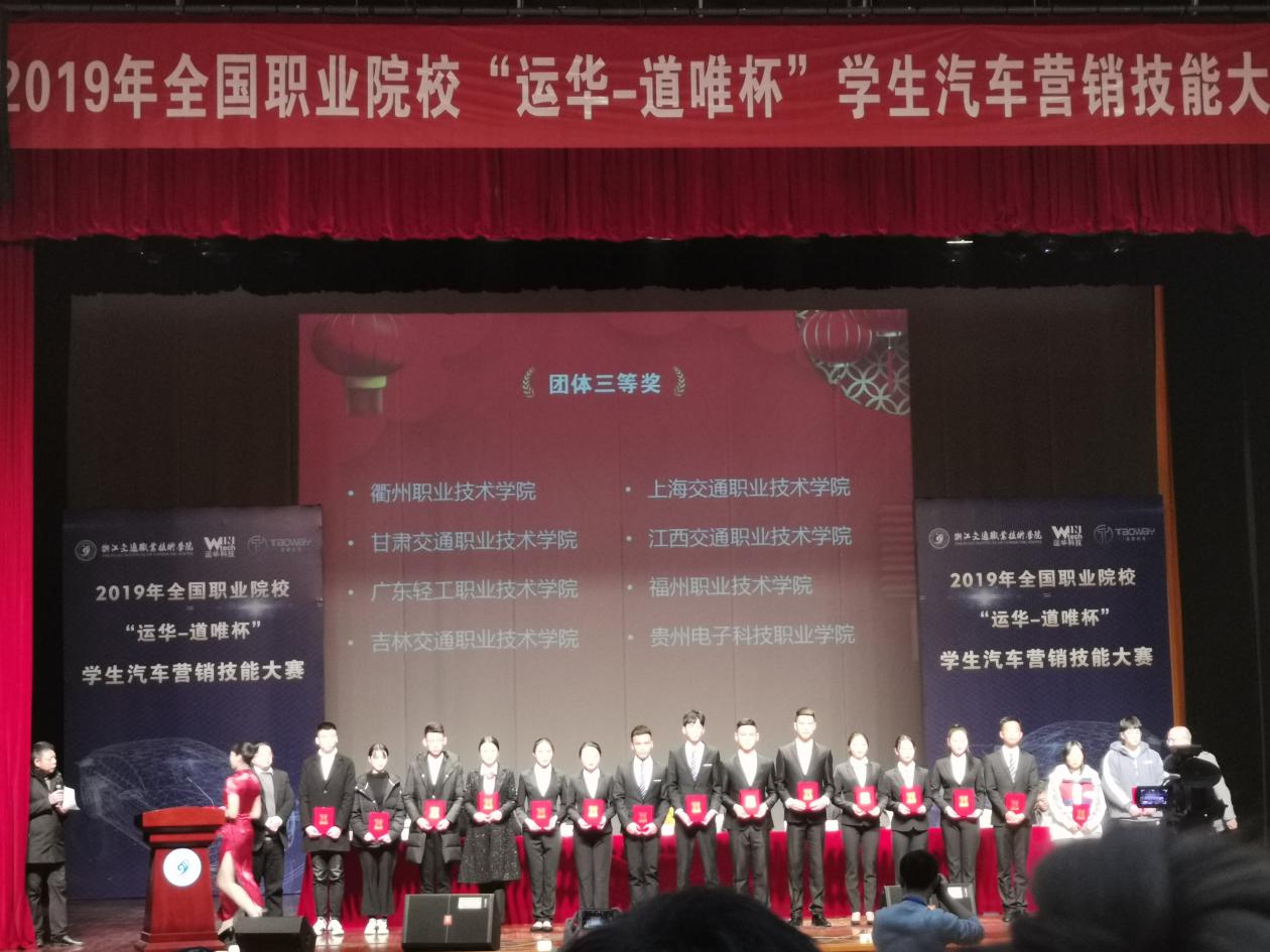 我院榮獲2019年全國職業(yè)院校“運(yùn)華-道唯杯”學(xué)生汽車營銷技能大賽賽項(xiàng)三等獎(jiǎng)