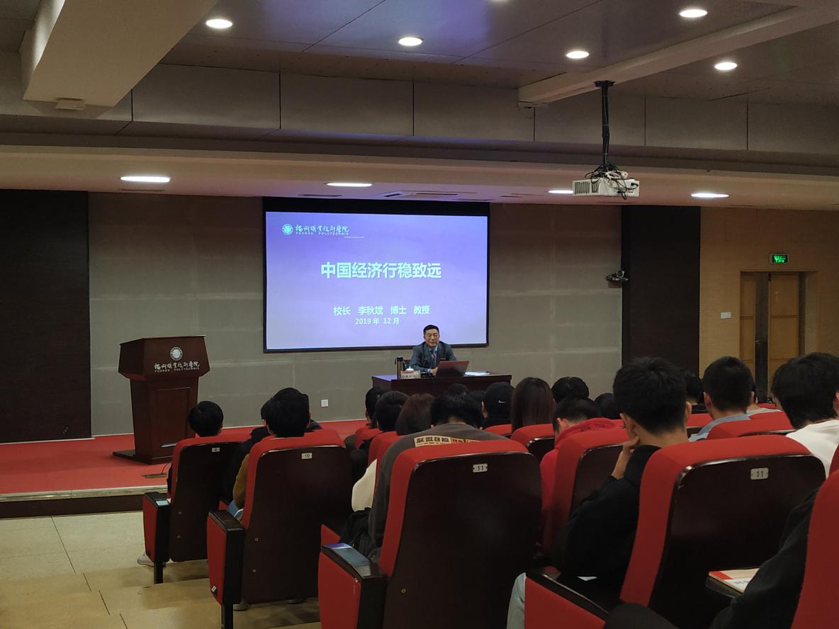 2019年12月13日下午,李秋斌校長(zhǎng)在學(xué)術(shù)報(bào)告廳,為交通工程學(xué)院300名師生做主題為《中國(guó)經(jīng)濟(jì)行穩(wěn)致遠(yuǎn)》的形勢(shì)與政策報(bào)告會(huì)。 報(bào)告會(huì)上,李校長(zhǎng)以中國(guó)經(jīng)濟(jì)行穩(wěn)致遠(yuǎn)為開(kāi)頭,講了四個(gè)部分,包括:一、總體平穩(wěn),主要預(yù)期目標(biāo)較好完成;二、穩(wěn)中有進(jìn),轉(zhuǎn)型升級(jí)蹄疾步穩(wěn);三、穩(wěn)中有變,正確看待風(fēng)險(xiǎn)與挑戰(zhàn);四、長(zhǎng)期向好,我國(guó)發(fā)展仍處于重要戰(zhàn)略機(jī)遇期。報(bào)告會(huì)深入淺出地闡述了我國(guó)經(jīng)濟(jì)現(xiàn)狀與進(jìn)程、機(jī)遇與挑戰(zhàn),使同學(xué)們對(duì)我國(guó)經(jīng)濟(jì)的發(fā)展有一個(gè)全面的,系統(tǒng)的了解,樹(shù)立了堅(jiān)定的發(fā)展信心。