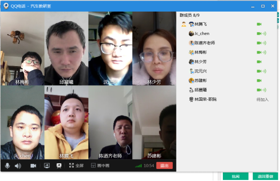 發(fā)布者: 發(fā)布時間:2020-03-13 瀏覽次數(shù):232 我校疫情防控期間的網(wǎng)絡(luò)教學(xué)已進入第二周。3月13日中午13:00,我院汽車教研室全體教職工在陳道齊副主任的主持下,通過QQ在線會議,對前兩周的網(wǎng)絡(luò)教學(xué)工作進行總結(jié)與匯報,各專任教師也借此機會開展了網(wǎng)絡(luò)教學(xué)交流研討。部分同志發(fā)表了對網(wǎng)絡(luò)教學(xué)的認識、思考和措施。最后,陳道齊副主任做了總結(jié)性發(fā)言,增強大家做好網(wǎng)絡(luò)教學(xué)的信心和力量。同時,希望以此為契機,在全校掀起教學(xué)研討的熱潮,深入開展教學(xué)模式和教學(xué)方法的改革,促進課堂教學(xué)質(zhì)量的全面提升。 (圖/文 林梅彬)