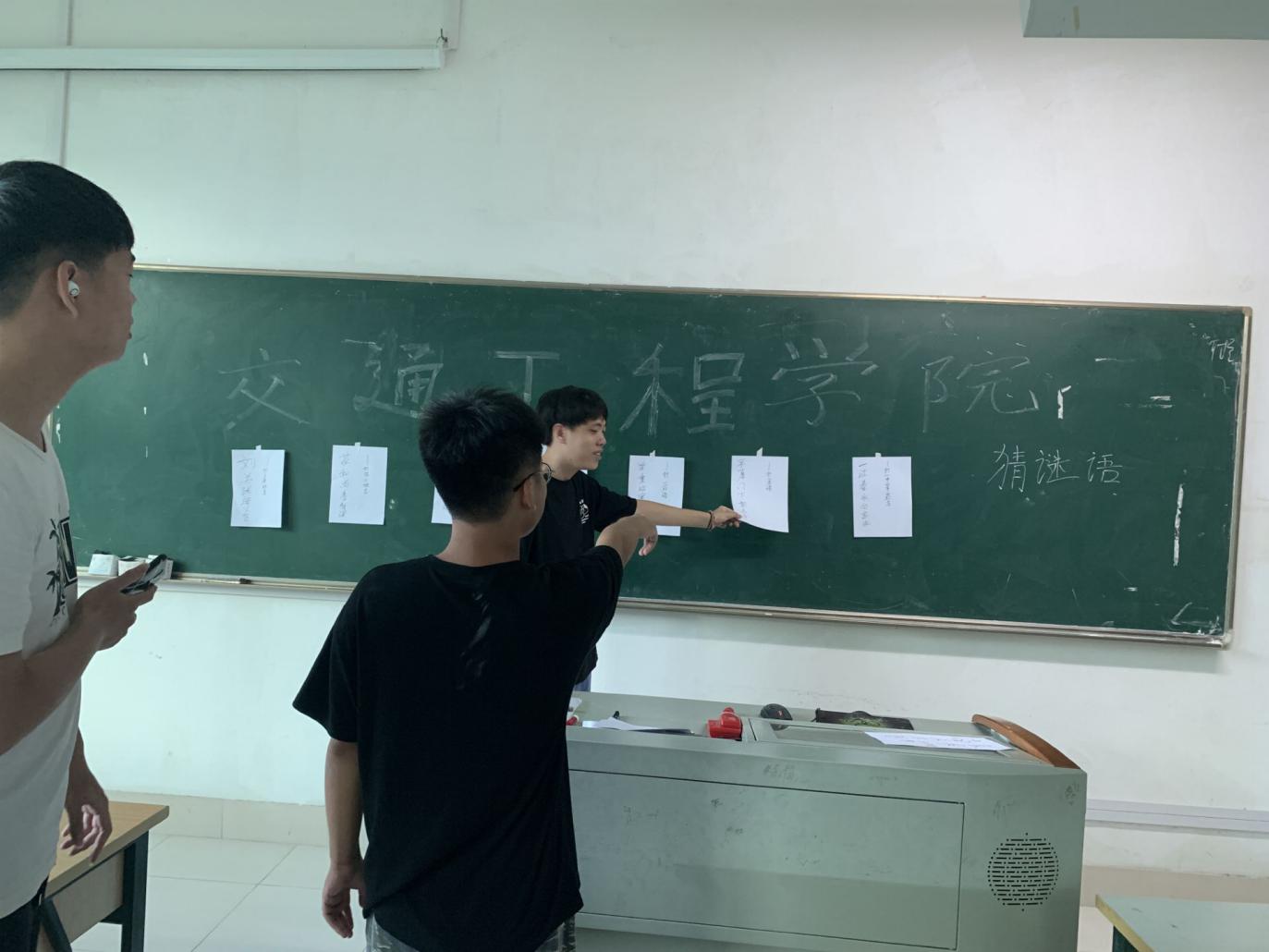 為弘揚中國傳統(tǒng)文化,豐富廣大人民群眾的文化生活,交通工程學院在國慶來臨之際,在10月1日下午一號樓309舉行了猜謎語系列活動。本次猜謎活動涉及面十分廣泛,內容涵蓋成語、宋詞、天文地理、詞牌名、中外名著、文學藝術以及歷史人物等方面。