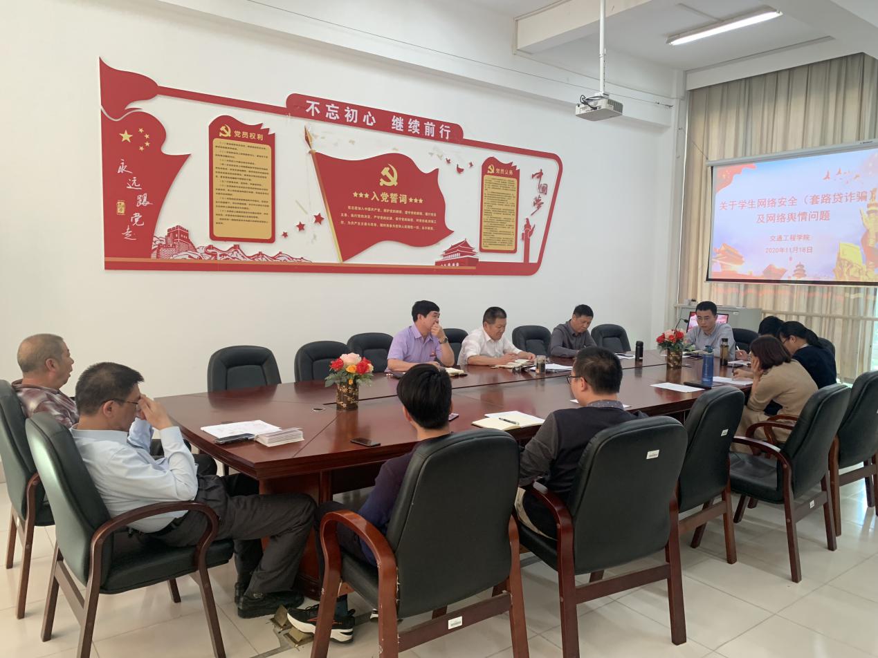 發(fā)布者: 發(fā)布時間:2020-11-18 瀏覽次數(shù):1337 交通工程學(xué)院11.18黨員大會 2020年11月18日 星期三,交通工程學(xué)院召開黨員大會,劉常勇書記就“關(guān)于學(xué)生網(wǎng)絡(luò)安全(套路貸詐騙)及網(wǎng)絡(luò)輿情問題”在會議上發(fā)表了重要講話。 “近期學(xué)校發(fā)生多起學(xué)生網(wǎng)絡(luò)詐騙事件,其中一起受騙金額為1.2萬元,另一起為7千元,因此關(guān)于學(xué)生網(wǎng)絡(luò)安全(套路貸詐騙)及網(wǎng)絡(luò)輿情問題還請相關(guān)輔導(dǎo)員班主任引起高度重視。”劉常勇書記表示,各位班主任要開展相關(guān)主題班會進(jìn)行強(qiáng)調(diào)和引導(dǎo),并落實到位,做好學(xué)生網(wǎng)絡(luò)安全思想工作,預(yù)防網(wǎng)絡(luò)詐騙以及正確對待網(wǎng)絡(luò)輿情。