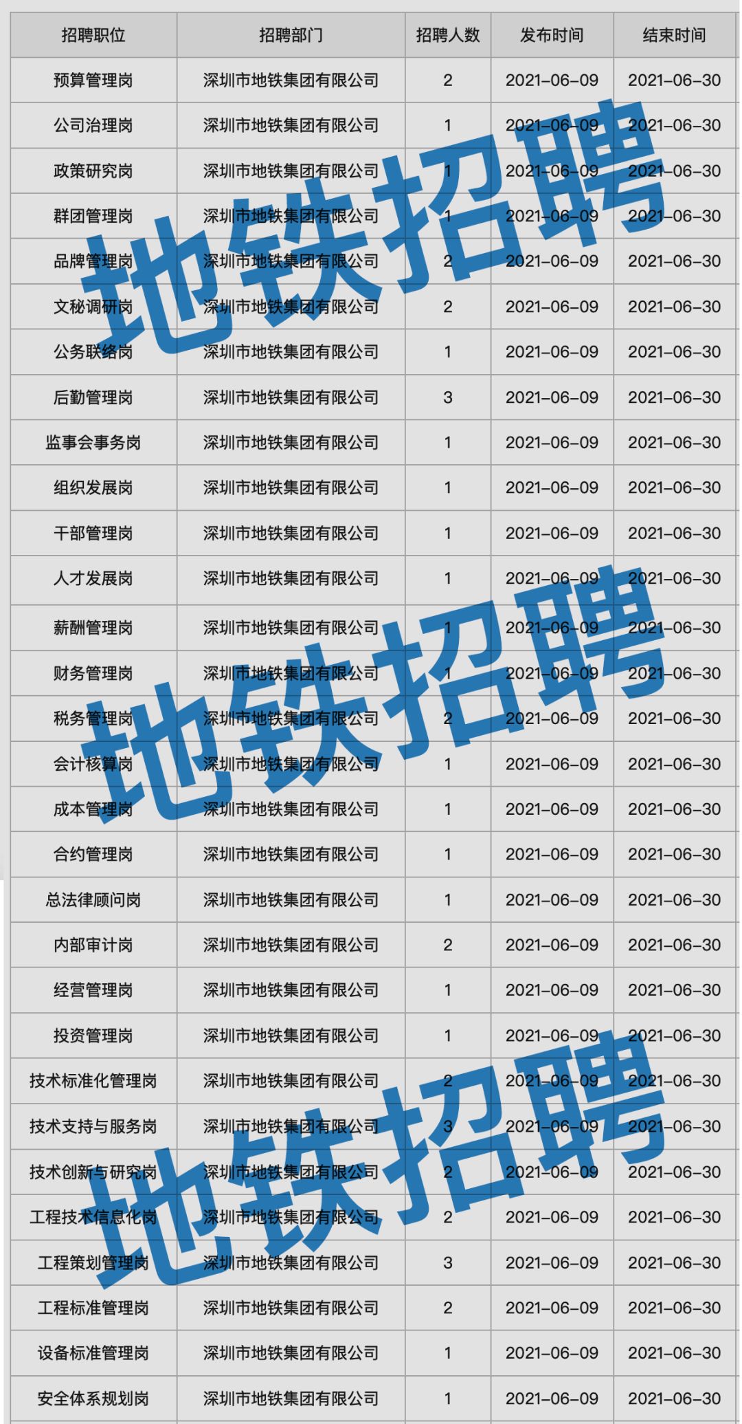 大量社會招聘!深圳地鐵最新招聘公告!
