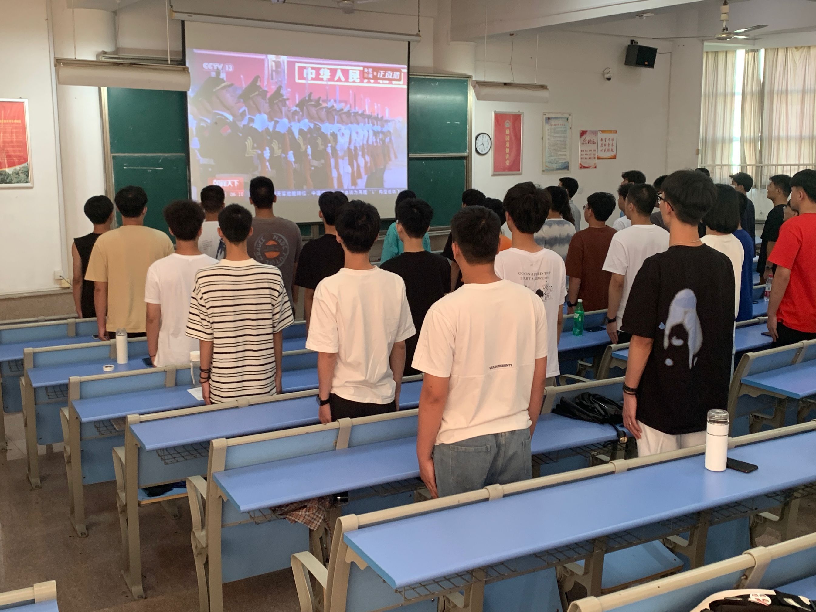 發(fā)布者: 發(fā)布時間:2022-10-01 瀏覽次數(shù):195 交通工程學(xué)院 2022-10-1 為熱烈慶祝中華人民共和國成立73周年,2022年10月1日,交通工程系開展了迎國慶系列活動。 10月1日下午,交通工程系在一號教學(xué)樓301開展了“歡度國慶·祝福祖國——觀看‘天安門廣場舉行2022年國慶升旗儀式’回放”活動。參加活動的有活動主持陳宇鑫輔導(dǎo)員和各班學(xué)生代表,在莊嚴(yán)肅穆的升旗儀式中,全體師生凝視著迎風(fēng)飄揚(yáng)的五星紅旗,滿懷崇敬之情向國旗行注目禮,送上了對祖國最美好的祝福。 隨后,為進(jìn)一步抓好抓實愛國教育,發(fā)揮“愛國電影”的教育引領(lǐng)作用,交通工程系組織觀看了《建國大業(yè)》,影片講述了從解放戰(zhàn)爭到 中華人民共和國成立前夕的斗爭歲月,展現(xiàn)了中國人民為了新中國的成立拋頭顱、灑熱血的不屈精神和熱血豪情,彰顯了中華英雄兒女的革命精神。短短兩個小時,現(xiàn)場的師生被革命先烈們保家衛(wèi)國的堅定信念和奮不顧身的精神所震撼,深刻意識到如今的幸福生活來之不易。 此次活動為培養(yǎng)大學(xué)生的崇高政治理想,明確新時代大學(xué)生的使命擔(dān)當(dāng),引導(dǎo)新時代大學(xué)生為中華民族的偉大復(fù)興而努奮斗,具有重大意義。 (陳宇鑫/文 劉欣煜/圖)