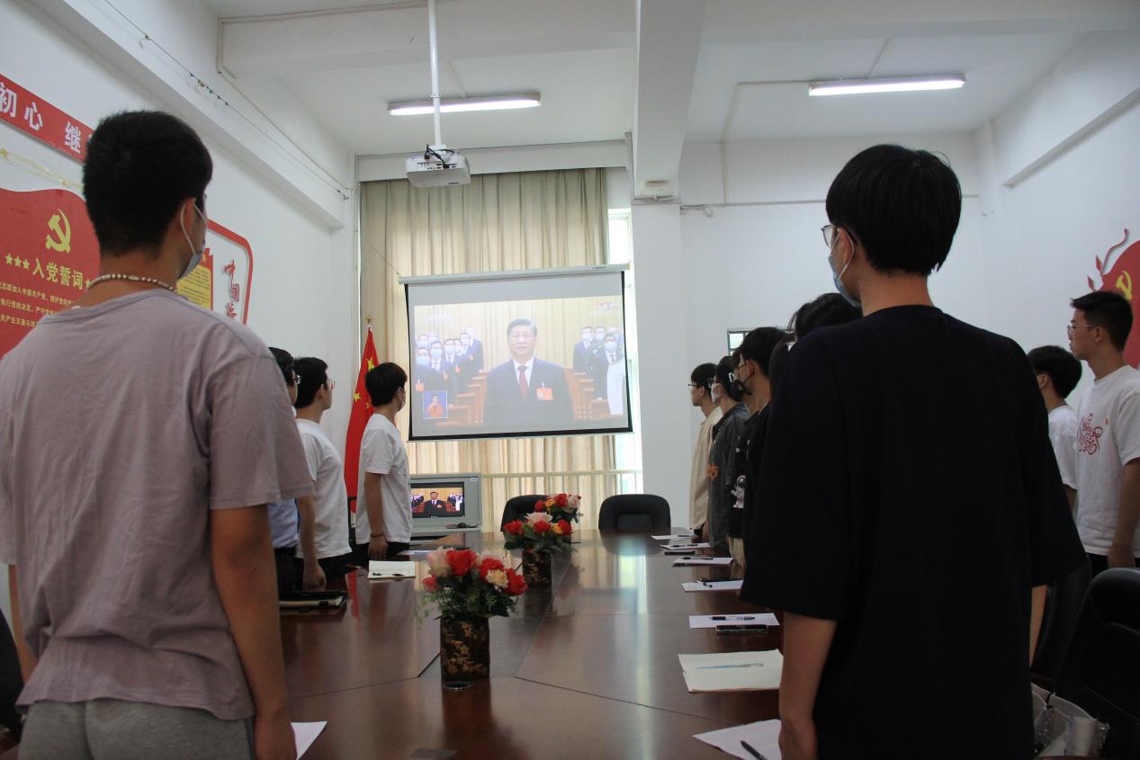 在會議室中,交通工程系主任陳天凡,輔導(dǎo)員陳宇鑫、蔣璐琳,學(xué)生預(yù)備黨員、團員代表等學(xué)生,認真聆聽學(xué)習習近平總書記在大會上所作的報告,其他同學(xué)分別在不同教室組織觀看。黨的二十大是在全黨全國各族人民邁上全面建設(shè)社會主義現(xiàn)代化國家新征程、向第二個百年奮斗目標進軍的關(guān)鍵時刻召開的一次十分重要的大會,具有十分重要的意義。