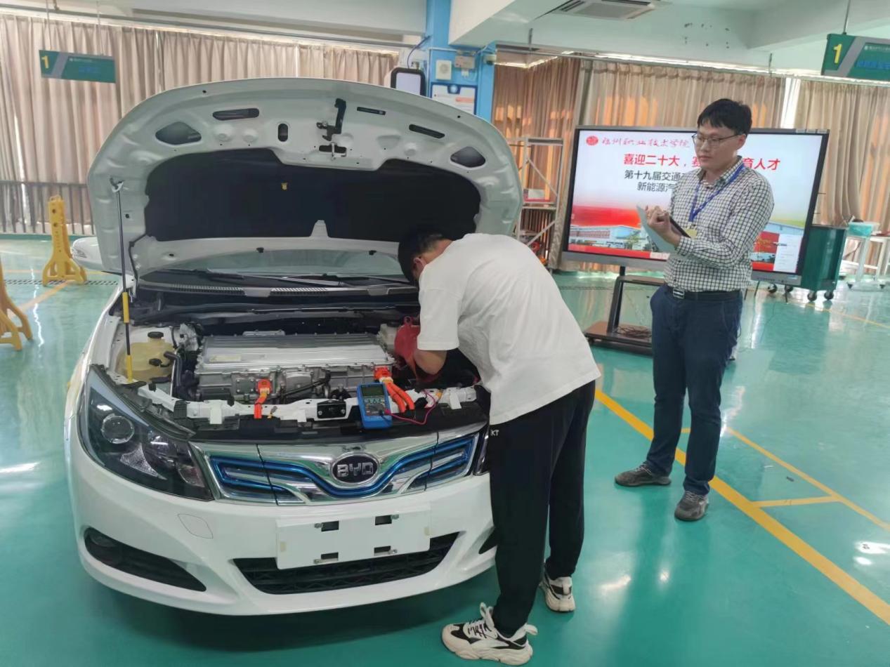 2022年10月21日,在中國共產(chǎn)黨第二十次全國代表大會召開在即,我院以“喜迎黨的二十大,賽教結(jié)合育人才”為主題,在職教中心2號樓新能源實訓(xùn)中心成功舉辦了福州職業(yè)技術(shù)學(xué)院第十九屆技能競賽“新能源汽車技術(shù)與服務(wù)”賽項。此次競賽由交通工程系主辦,參賽學(xué)生主要為我校新能源汽車技術(shù)專業(yè)在校學(xué)生,預(yù)賽人數(shù)達到135名,通過前期緊鑼密鼓的籌備工作,對預(yù)賽報名選手進行前期指導(dǎo),通過職教云理論選撥考核,最終遴選出22名選手組成11隊進入決賽。決賽圍繞比亞迪e5純電動車“高壓不能上電”故障診斷進行。