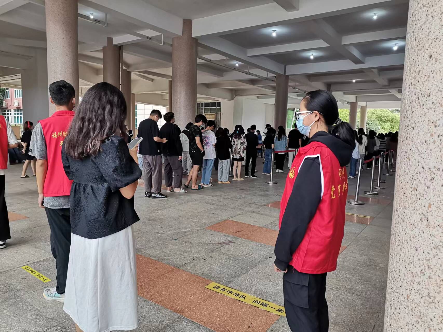 在這樣特殊時期疫情防控形勢嚴峻之下,福州職業(yè)技術學院多名學子作為青年,服務于群眾與社會中去。其中,我校交通工程系020級學生吳棋羽作為志愿者投身于一線,與其他學生一起參與到核酸檢測的疫情防控工作中去,助力校園防疫,守護校園平安。