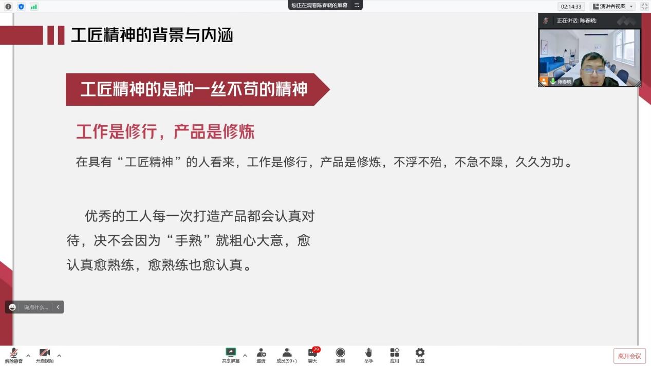 此次講座讓學(xué)生意識(shí)到工匠精神不是口號(hào),需要腳踏實(shí)地地對(duì)待工作,在自己的崗位上踐行“工匠精神”,努力成為一名新時(shí)代的匠人。