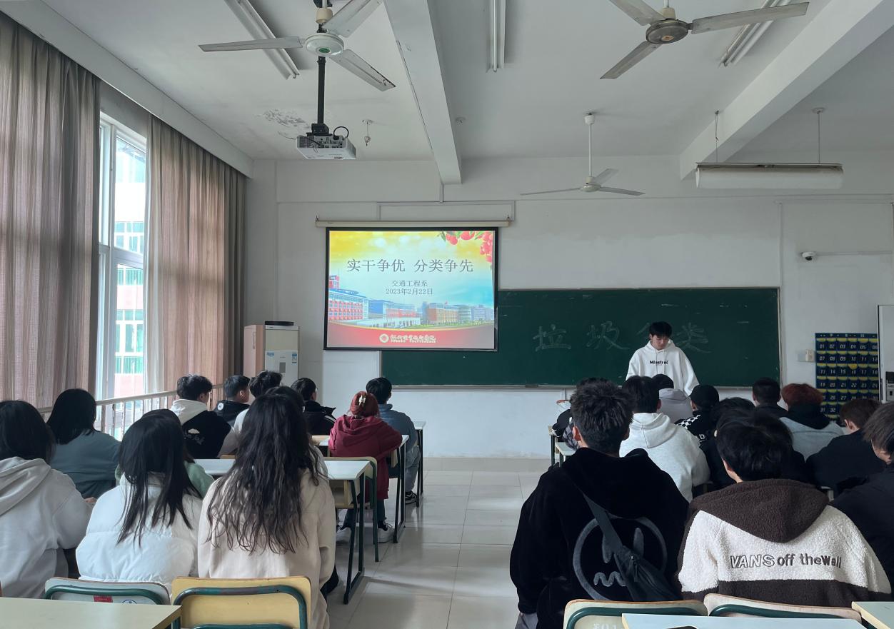 為了營造良好的校園環(huán)境,加強(qiáng)垃圾分類回收意識,讓垃圾分類理念深入人心,2023年2月21日交通工程系于一號樓開展了“實(shí)干爭優(yōu),分類爭先”主題教育。