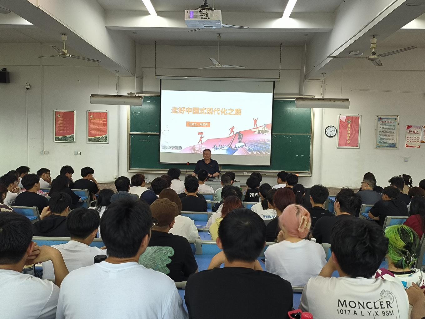 發(fā)布者: 發(fā)布時間:2023-04-19 瀏覽次數(shù):176 交通工程系 2023-4-19 2023年4月19日,交通工程系在1號教學(xué)樓301開展了主題為“走好中國式現(xiàn)代化之路”的形勢與政策報告會。 本次報告會由交通工程系黨總支書記劉常勇?lián)沃髦v,報告會上,通過講清楚我們黨接續(xù)奮斗、推進社會主義現(xiàn)代化建設(shè)的歷程,我們黨百年來團結(jié)帶領(lǐng)中國人民所進行的一切奮斗,就是為了把我國建設(shè)成為現(xiàn)代化強國,實現(xiàn)中華民族偉大復(fù)興;講清楚中國式現(xiàn)代化的特征,中國式現(xiàn)代化是中國共產(chǎn)黨領(lǐng)導(dǎo)的社會主義現(xiàn)代化;講清楚中國式現(xiàn)代化的本質(zhì)要求。堅持中國共產(chǎn)黨領(lǐng)導(dǎo),堅持中國特色社會主義,實現(xiàn)高質(zhì)量發(fā)展,發(fā)展全過程人民民主,豐富人民精神世界,實現(xiàn)全體人民共同富裕,促進人與自然和諧共生,推動構(gòu)建人類命運共同體,創(chuàng)造人類文明新形態(tài)。 此次報告會對幫助大學(xué)生了解走好中國式現(xiàn)代化之路,認識到中國式現(xiàn)代化道路不僅走得對、走得通,而且也一定能夠走得穩(wěn)、走得好,從而堅定以中國式現(xiàn)代化全面推進中華民族偉大復(fù)興的必勝信念。