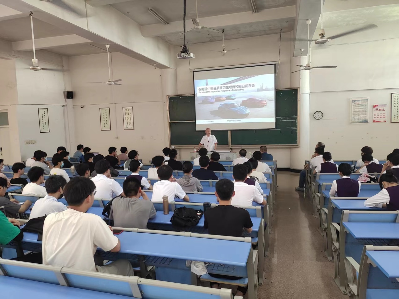 隨后劉常勇書(shū)記等一行人陪同來(lái)賓參觀了實(shí)訓(xùn)室。當(dāng)天下午,劉常勇書(shū)記主持召開(kāi)了保時(shí)捷品質(zhì)實(shí)習(xí)生項(xiàng)目宣講會(huì),李衡經(jīng)理給我系學(xué)生詳細(xì)介紹了項(xiàng)目情況,參與宣講會(huì)的同學(xué)們積極互動(dòng),反響良好。
