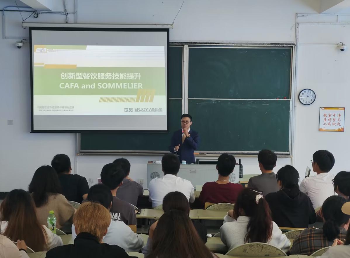 黃昕老師向同學(xué)們介紹了西餐服務(wù)、葡萄酒侍酒服務(wù)等相關(guān)內(nèi)容,并著重講解了餐飲服務(wù)中西餐服務(wù)流程與技能和侍酒師操作與基礎(chǔ)品鑒。通過(guò)此次講座,同學(xué)們掌握了西餐的各項(xiàng)服務(wù)標(biāo)準(zhǔn),提高了大家的多方向就業(yè)能力,讓空乘專(zhuān)業(yè)的同學(xué)們可以提前為自己的就業(yè)方向做好規(guī)劃。