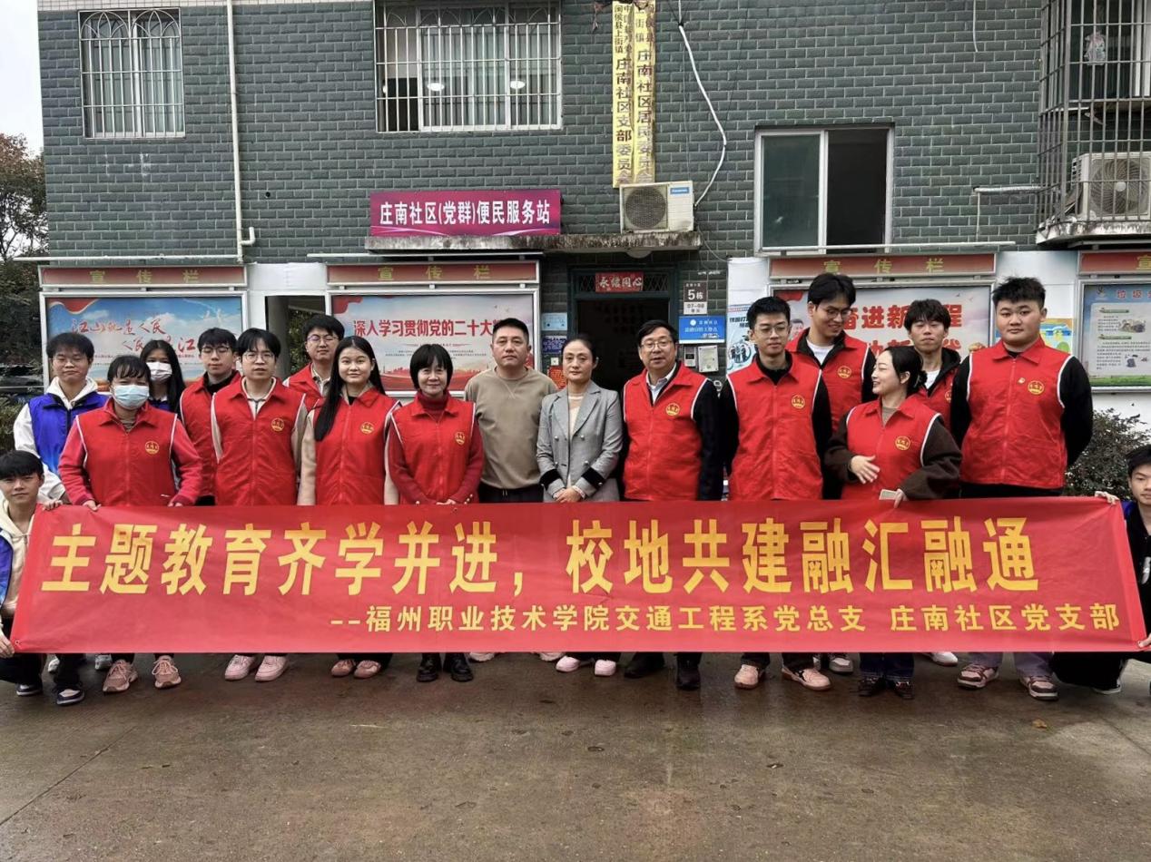 為全面貫徹落實(shí)黨的二十大精神,扎實(shí)推進(jìn)主題教育走深走實(shí)見行見效,交通工程系黨總支于12月13日赴上街鎮(zhèn)莊南社區(qū)開展“主題教育齊學(xué)并進(jìn) 校地共建融匯融通”主題黨日活動(dòng)。