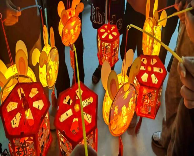 活動(dòng)現(xiàn)場(chǎng),五彩斑斕的燈籠材料、各式各樣的裝飾物以及溫馨的節(jié)日氛圍,讓每一位參與者都沉浸在濃厚的節(jié)日氣氛中?;顒?dòng)開始,大家共同學(xué)習(xí)了解中秋的歷史淵源、文化意義,接著以兩人一組開始制作燈籠。在同學(xué)們的巧手下,走馬燈、兔子燈逐漸成形,每一件作品都凝聚了參與者的心血,也展現(xiàn)了他們對(duì)中秋佳節(jié)的深深祝福。隨著夜幕降臨,一盞盞手工燈籠在南區(qū)一站式社區(qū)內(nèi)亮起,照亮了彼此的笑臉,也照亮了每個(gè)人心中的那份溫情與美好?;顒?dòng)現(xiàn)場(chǎng)充滿了歡聲笑語(yǔ),節(jié)日氛圍和諧濃厚。