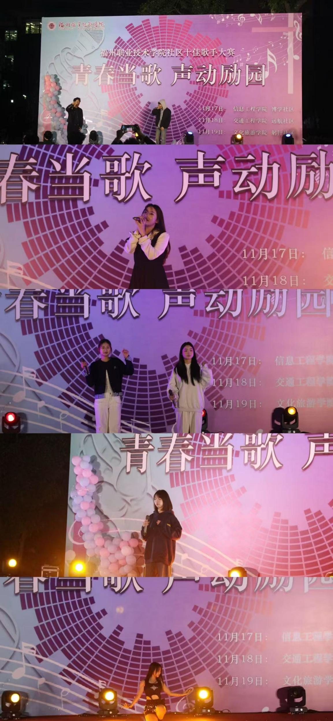 發(fā)布者: 發(fā)布時(shí)間:2024-11-25 瀏覽次數(shù):223 11月18日晚,勵(lì)園廣場(chǎng)上歌聲悠揚(yáng),掌聲雷動(dòng)。“青春當(dāng)歌,聲動(dòng)勵(lì)園” 校園青春歌會(huì)暨十佳歌手決賽在此舉行。輔導(dǎo)員高凌飛、江嘉龍,各院學(xué)生會(huì)主席以及學(xué)生代表出席活動(dòng)。 隨著夜幕降臨,廣場(chǎng)上燈火通明,人潮涌動(dòng)。在主持人的熱情介紹下,比賽正式拉開(kāi)帷幕。首先,由學(xué)生說(shuō)唱社帶來(lái)的表演 《羅生門》瞬間點(diǎn)燃了現(xiàn)場(chǎng)的氣氛,觀眾們紛紛鼓掌歡呼,為接下來(lái)的歌手們加油打氣。隨后,參賽選手們依次登臺(tái)亮相,他們用自己獨(dú)特的嗓音和深情的演繹,為大家?guī)?lái)了一場(chǎng)精彩絕倫的音樂(lè)盛宴。從氣勢(shì)磅礴的 《多遠(yuǎn)都要在一起》到溫婉動(dòng)人的《PS 我愛(ài)你》,每一首歌曲都充滿了青春的活力和對(duì)夢(mèng)想的執(zhí)著追求。選手們不僅展現(xiàn)了出色的唱功,更通過(guò)音樂(lè)傳達(dá)了積極向上的生活態(tài)度和對(duì)美好末來(lái)的憧憬。 此次“青春當(dāng)歌,聲動(dòng)勵(lì)園”校園十佳歌手大賽是一次青春與夢(mèng)想的碰撞與交融,激發(fā)了廣大學(xué)生熱愛(ài)藝術(shù)、努力成才的熱情,還為同學(xué)們提供了一個(gè)施展才華、鍛煉能力的機(jī)會(huì),讓他們通過(guò)努力和表現(xiàn)來(lái)獲得肯定和認(rèn)可。接下來(lái),遠(yuǎn)航社區(qū)將持續(xù)深入推動(dòng)校園文化藝術(shù)的普及與提高,鼓勵(lì)更多的同學(xué)參與到各類文藝活動(dòng)中來(lái),展現(xiàn)學(xué)校青年學(xué)子積極進(jìn)取、朝氣蓬勃的精神風(fēng)貌。