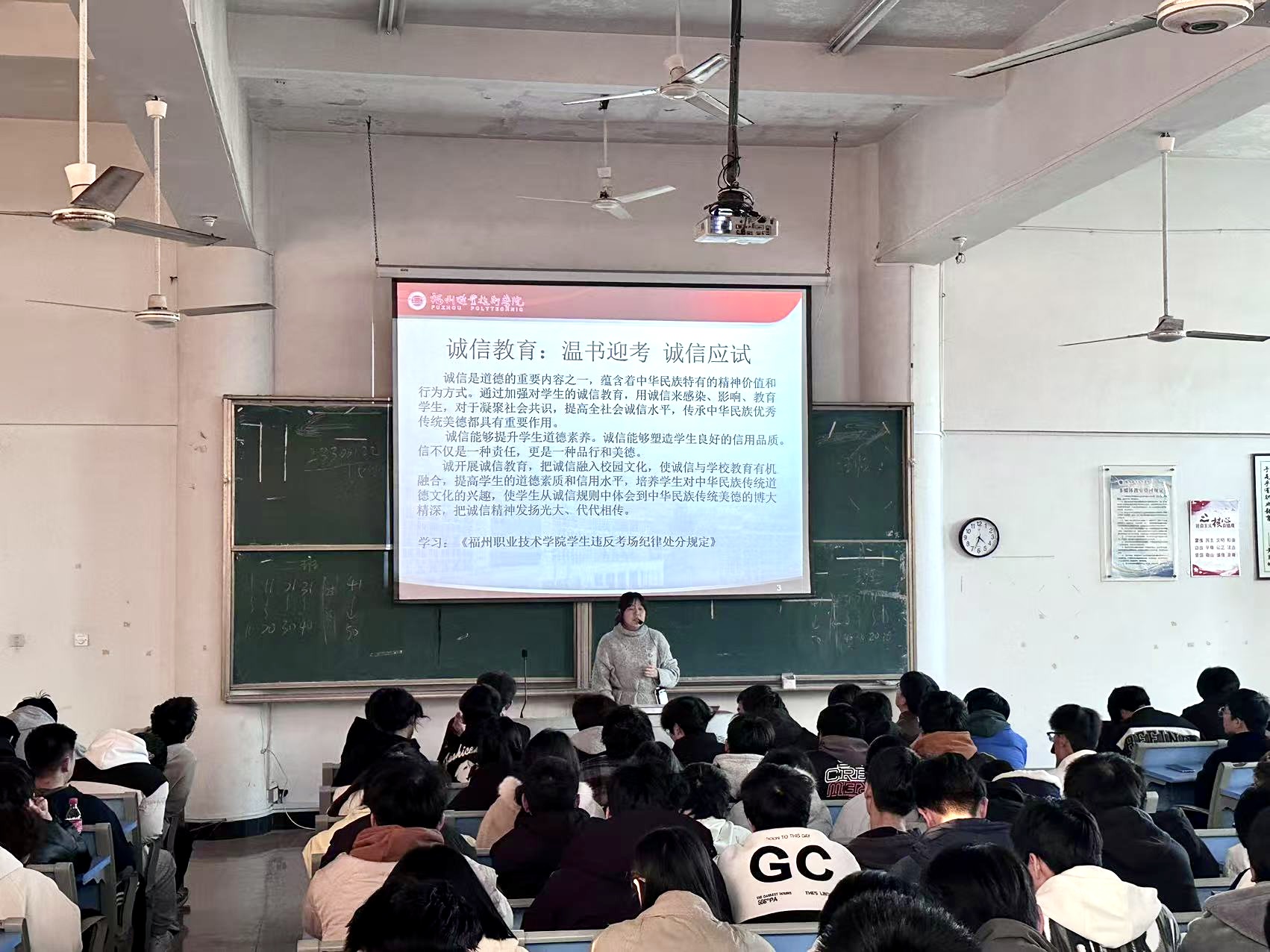 發(fā)布者: 發(fā)布時間:2025-01-09 瀏覽次數(shù):239 為了強化學(xué)生的誠信意識,助力營造良好的考試環(huán)境,近日,交通工程學(xué)院開展了以 “誠信教育” 為主題的班會活動。 班會現(xiàn)場,各班輔導(dǎo)員通過講解典型案例,解讀學(xué)校的考試規(guī)章制度,向同學(xué)們深入剖析了考試作弊的危害,讓同學(xué)們清晰知曉考試的各項要求與違規(guī)后果,從學(xué)業(yè)影響到個人品德塑造,全方位地闡述誠信應(yīng)考的重要性。 此次主題班會的開展,在學(xué)院內(nèi)營造了濃厚的誠信考試氛圍,為即將到來的期末考試筑牢了思想防線,助力學(xué)院優(yōu)良學(xué)風(fēng)的持續(xù)建設(shè),讓誠信之風(fēng)吹遍校園每個角落。 供圖|張佳樂 文章|江嘉龍