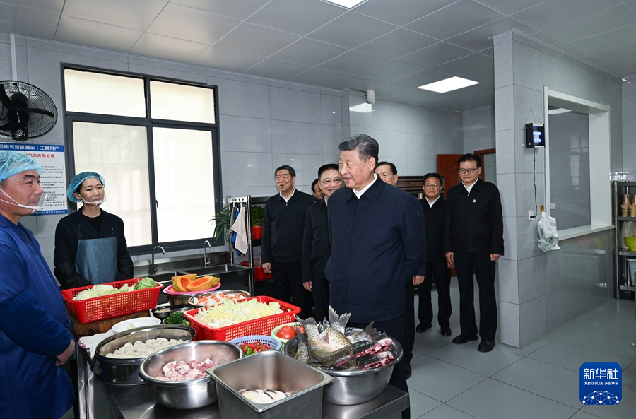 11月4日至6日,中共中央總書記、國家主席、中央軍委主席習(xí)近平在湖北考察。這是5日上午,習(xí)近平在咸寧市嘉魚縣潘家灣鎮(zhèn)四邑村養(yǎng)老服務(wù)驛站食堂考察。新華社記者 謝環(huán)馳 攝