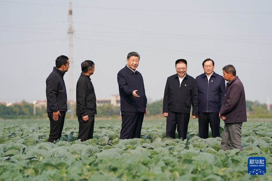 11月4日至6日,中共中央總書記、國家主席、中央軍委主席習(xí)近平在湖北考察。這是5日上午,習(xí)近平在咸寧市嘉魚縣潘家灣鎮(zhèn)十里蔬菜長廊考察時,走進(jìn)田間,察看蔬菜長勢。新華社記者 謝環(huán)馳 攝