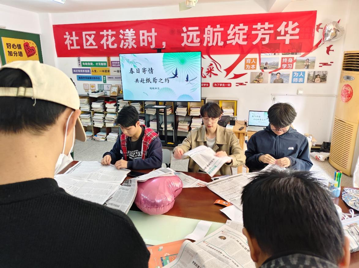 活動(dòng)現(xiàn)場(chǎng),社區(qū)的空地上擺滿了制作風(fēng)箏的材料,卡紙、竹條、顏料一應(yīng)俱全。同學(xué)們攜手合作,先用竹條搭建風(fēng)箏骨架,再仔細(xì)地將卡紙蒙在骨架上,隨后拿起畫筆,盡情發(fā)揮創(chuàng)意,制作完成后,大家來到開闊場(chǎng)地放飛風(fēng)箏。一只只承載著春日希望與美好祝福的風(fēng)箏在藍(lán)天下展翅翱翔,構(gòu)成了一幅生機(jī)勃勃的春日畫卷。