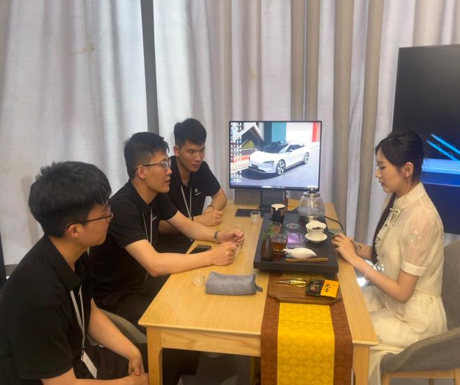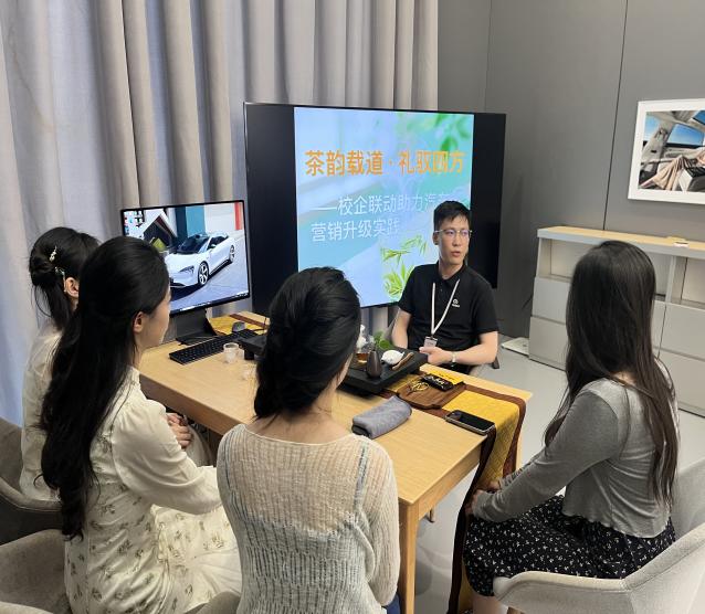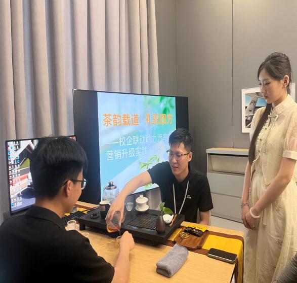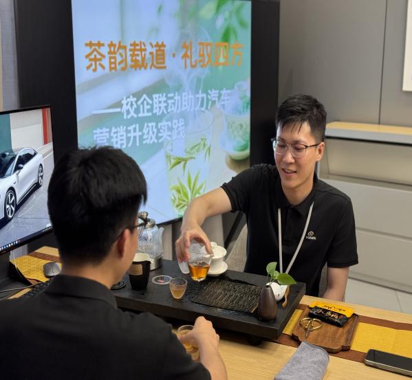 實(shí)踐隊(duì)聯(lián)合當(dāng)?shù)伉櫭芍切袖N售團(tuán)隊(duì),創(chuàng)新開展“茶韻載道·禮馭四方”職業(yè)素養(yǎng)提升培訓(xùn),以“茶禮”軟實(shí)力塑造企業(yè)硬品牌,引領(lǐng)服務(wù)新標(biāo)桿,為產(chǎn)業(yè)振興注入文化動(dòng)能。隊(duì)員們將福州茶道禮儀精髓融入高端客戶接待流程,設(shè)計(jì)“茶文化體驗(yàn)式營(yíng)銷”課程,通過(guò)“鳳凰三點(diǎn)頭”“關(guān)公巡城”等茶藝流程的普通話解說(shuō)及敬茶禮儀用語(yǔ)特訓(xùn),幫助銷售員提升服務(wù)品質(zhì)。來(lái)自空中乘務(wù)專業(yè)的同學(xué)們利用自身茶藝禮儀知識(shí),將傳統(tǒng)文化與現(xiàn)代服務(wù)相結(jié)合,與汽車專業(yè)同學(xué)一起躬身實(shí)踐,同時(shí)在實(shí)踐過(guò)程中與工作人員座談交流中提升個(gè)人綜合素養(yǎng)。