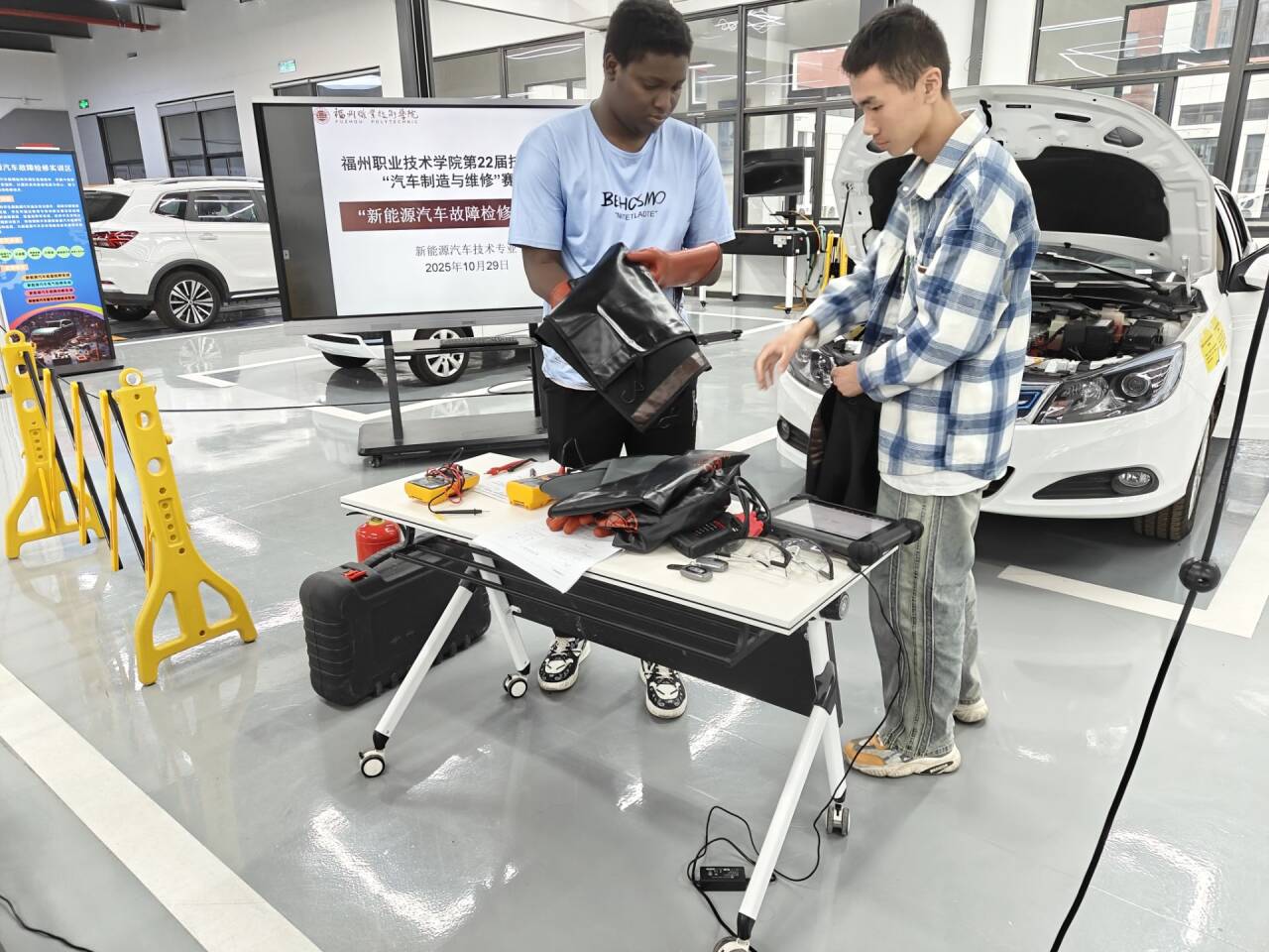 發(fā)布者:交通工程學(xué)院 發(fā)布時間:2025-10-30 瀏覽次數(shù):184 2025年10月29日,福州職業(yè)技術(shù)學(xué)院第22屆技能大賽“汽車制造與維修”賽道下的“新能源汽車故障檢修”賽項,在匠心樓汽車實訓(xùn)基地順利舉辦。 本次賽項聚焦新能源汽車產(chǎn)業(yè)人才需求,面向新能源汽車技術(shù)專業(yè)220名在校生(含2名國際生)開展初選,圍繞電池、電機、充電系統(tǒng)等核心模塊進行考核。最終26名學(xué)生(含1名國際生)組成13支隊伍晉級決賽。 決賽以“純電動汽車整車綜合故障排除”為主題,模擬高壓系統(tǒng)、動力系統(tǒng)等真實故障場景,重點考查選手的故障診斷與排除能力。各隊分工明確、操作規(guī)范,展現(xiàn)出良好的專業(yè)素養(yǎng)與團隊協(xié)作能力。國際生選手與隊友密切配合,展現(xiàn)了扎實技能與跨文化協(xié)作能力。 經(jīng)現(xiàn)場評委綜合評定,共決出金獎2隊、銀獎4隊、銅獎6隊。學(xué)院將持續(xù)推進“以賽促學(xué)、以賽促教”,深化課程改革與國際化辦學(xué),為新能源汽車產(chǎn)業(yè)輸送更多高素質(zhì)技術(shù)技能人才。 (陳家城/圖文)