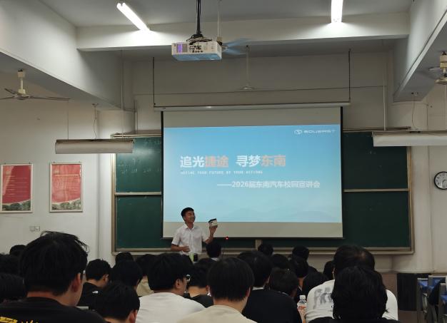 發(fā)布者:交通工程學(xué)院 發(fā)布時(shí)間:2025-09-24 瀏覽次數(shù):120 2025年9月24日,交通工程學(xué)院為助力同學(xué)們就業(yè)、推動(dòng)高質(zhì)量就業(yè),邀請(qǐng)東南汽車(chē)工業(yè)股份有限公司于厚實(shí)樓301開(kāi)展專場(chǎng)招聘宣講會(huì)。 宣講會(huì)上,東南汽車(chē)招聘經(jīng)理詳細(xì)介紹了公司的發(fā)展歷程,同時(shí)詳解了企業(yè)鵬起東南、行諸四海的理念,以及依托三菱技術(shù)與奇瑞資源形成的動(dòng)力、智能駕駛等技術(shù)優(yōu)勢(shì),并公布了研發(fā)、生產(chǎn)、銷(xiāo)售等多領(lǐng)域崗位需求及福利待遇 。 互動(dòng)環(huán)節(jié)中,企業(yè)針對(duì)同學(xué)關(guān)心的行業(yè)前景、崗位發(fā)展路徑等問(wèn)題逐一解答。同學(xué)們表示,此次宣講明晰了傳統(tǒng)車(chē)企向新能源轉(zhuǎn)型的就業(yè)方向,為職業(yè)規(guī)劃提供了實(shí)用參考。