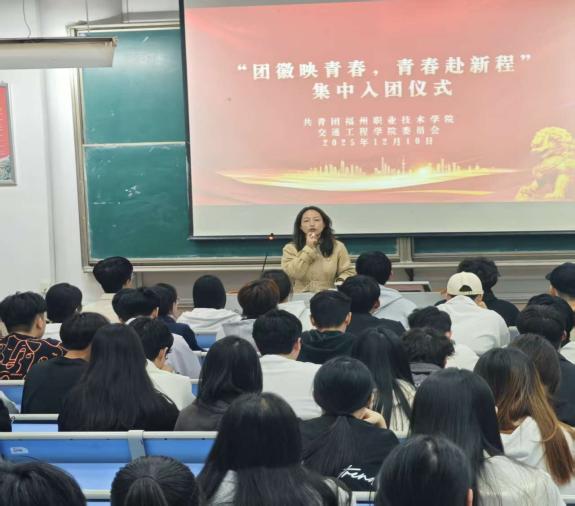 發(fā)布者:交通工程學(xué)院 發(fā)布時間:2025-12-10 瀏覽次數(shù):99 2025年12月10日,交通工程學(xué)院隆重舉行新團(tuán)員集中入團(tuán)和老團(tuán)員重溫入團(tuán)儀式活動,活動由團(tuán)總支書記高凌飛主持,新發(fā)展團(tuán)員及部分老團(tuán)員代表參加。 儀式在莊嚴(yán)的《中國共產(chǎn)主義青年團(tuán)團(tuán)歌》中拉開帷幕。高凌飛老師首先宣讀了新團(tuán)員名單,隨后學(xué)院團(tuán)總支書記和老團(tuán)員代表為新團(tuán)員佩戴團(tuán)徽、頒發(fā)團(tuán)員證,象征著新成員正式加入共青團(tuán)大家庭。在領(lǐng)誓人的帶領(lǐng)下,新團(tuán)員面向團(tuán)旗莊嚴(yán)宣誓,錚錚誓言展現(xiàn)出青年學(xué)子堅(jiān)定的理想信念與責(zé)任擔(dān)當(dāng)。最后,高凌飛老師勉勵新團(tuán)員,要以入團(tuán)為新起點(diǎn),深入學(xué)習(xí)黨的創(chuàng)新理論,將個人理想融入交通強(qiáng)國建設(shè)與中國式現(xiàn)代化進(jìn)程,在學(xué)業(yè)鉆研與實(shí)踐服務(wù)中錘煉本領(lǐng),以實(shí)際行動踐行“請黨放心,強(qiáng)國有我”的青春誓言。新團(tuán)員紛紛表示,將以團(tuán)員身份嚴(yán)格要求自己,努力成長為有理想、敢擔(dān)當(dāng)、能吃苦、肯奮斗的新時代好青年,為學(xué)校發(fā)展與國家建設(shè)貢獻(xiàn)青春力量。