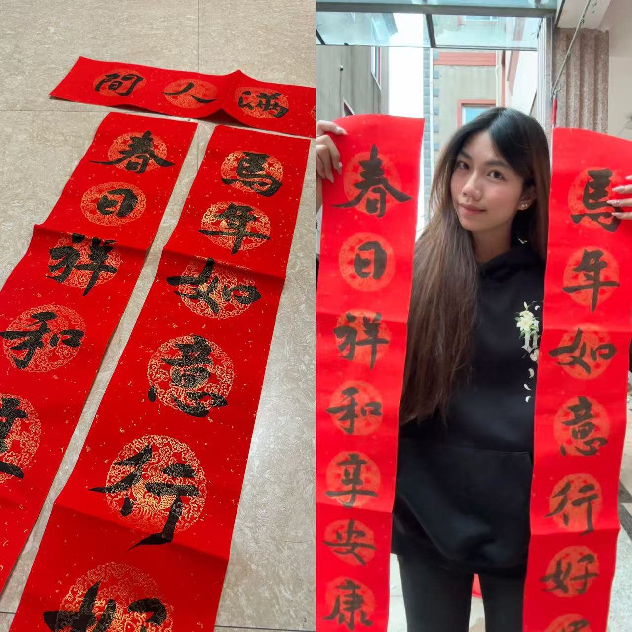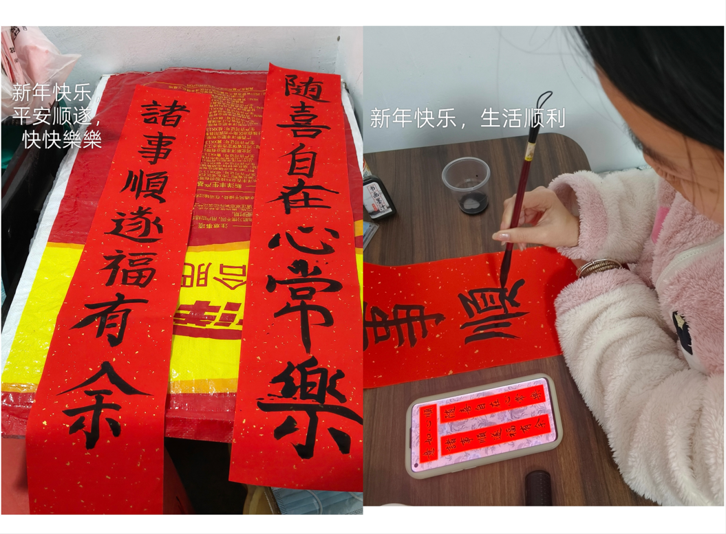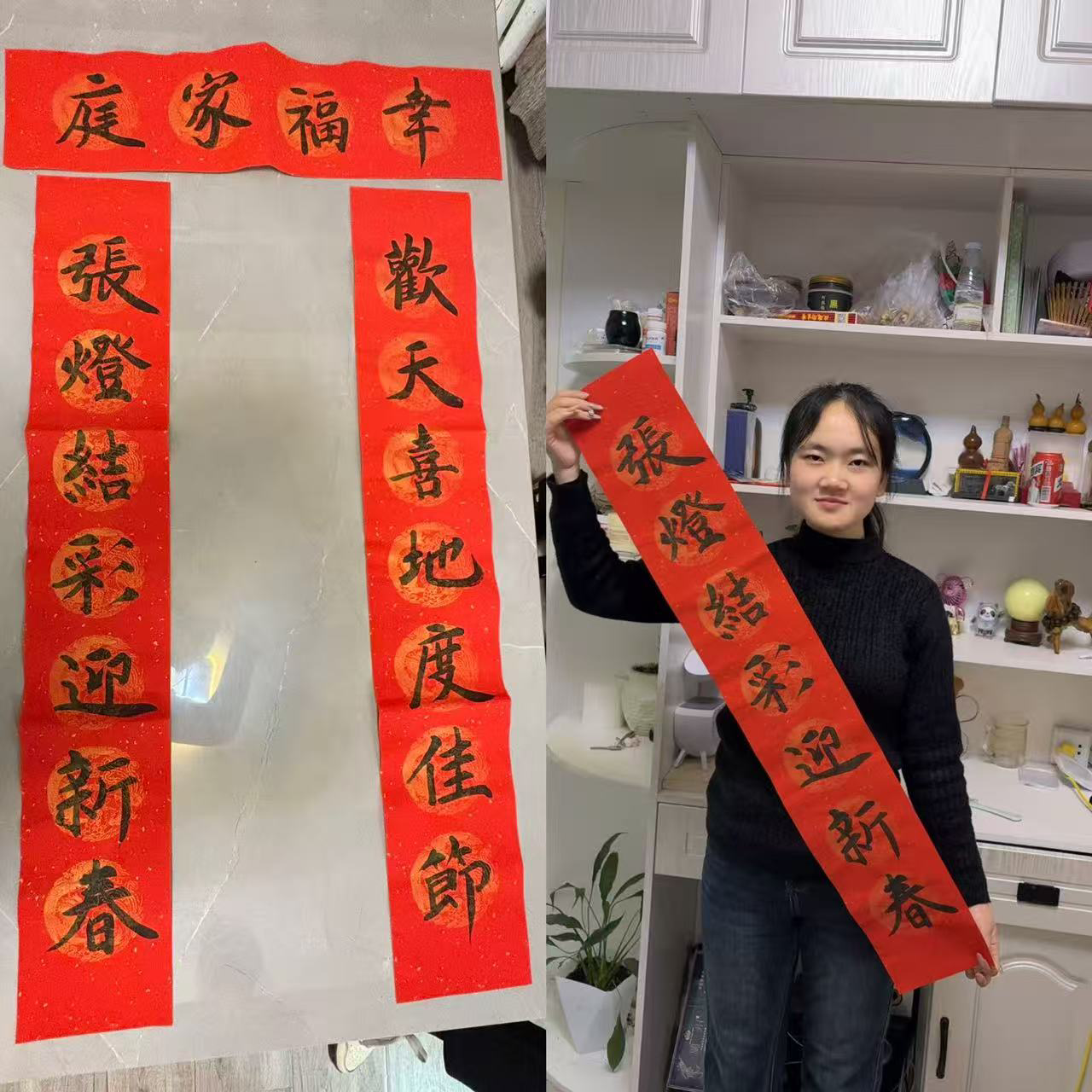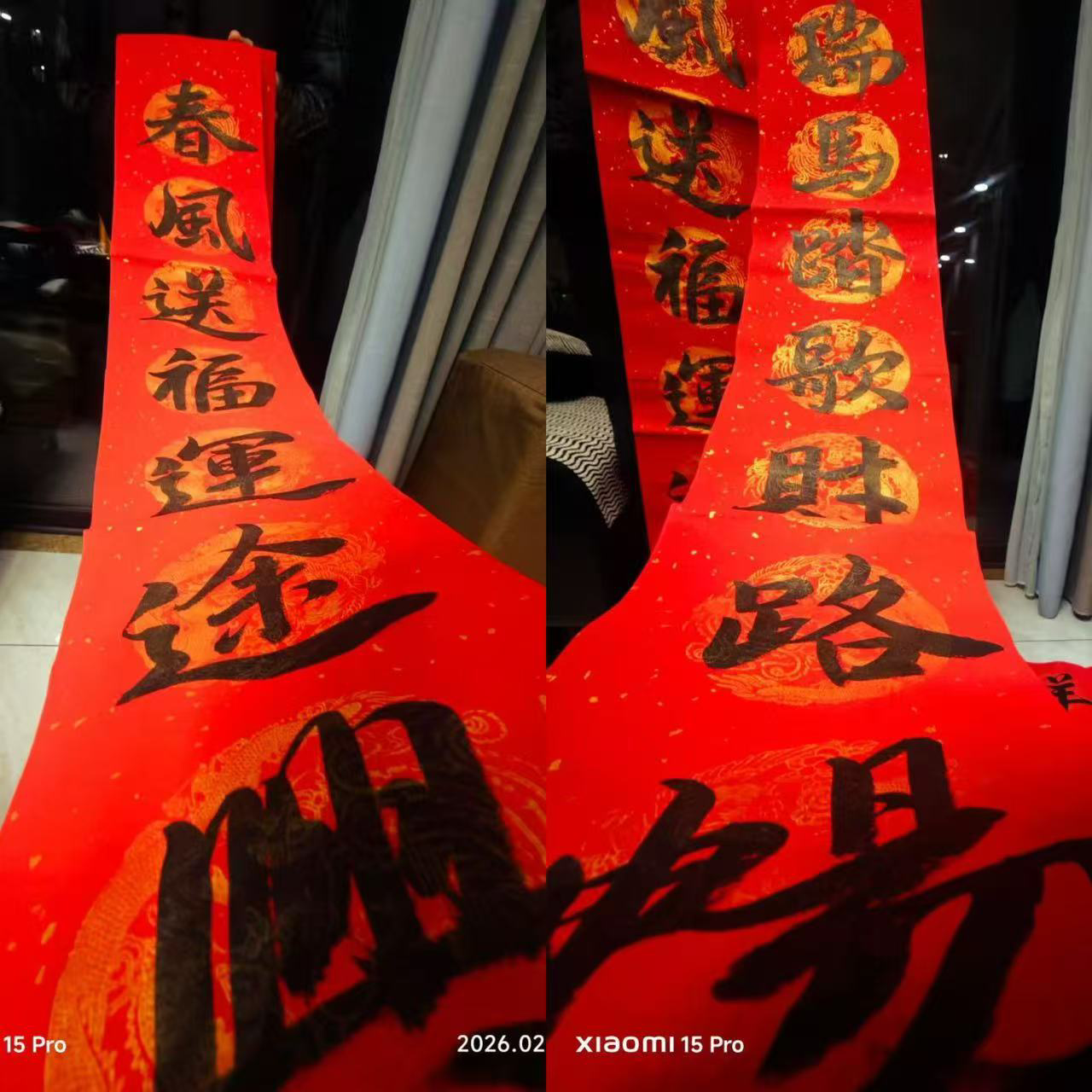 同學(xué)們將創(chuàng)作完成的春聯(lián)與“?!弊志呐臄z,將一幅幅溫暖的新年寄語(yǔ)進(jìn)行集中展示與分享。一幅幅紅火的作品、一句句真摯的話(huà)語(yǔ),在冬日校園內(nèi)外傳遞著濃濃溫情與傳統(tǒng)年味,讓廣大師生在筆墨書(shū)香中共同領(lǐng)略了中華優(yōu)秀傳統(tǒng)文化的深厚魅力。