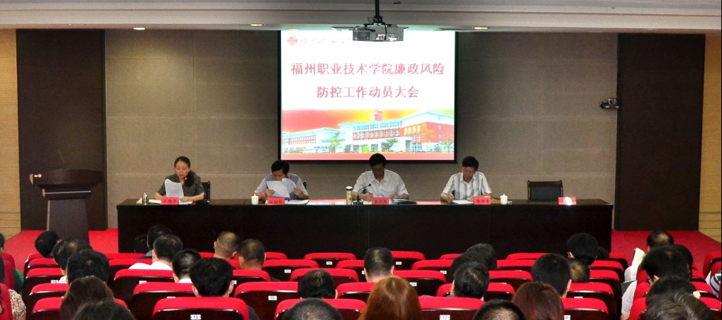 2012年9月28日下午,學(xué)院召開(kāi)廉政風(fēng)險(xiǎn)防控工作動(dòng)員大會(huì),學(xué)院副科級(jí)及以上領(lǐng)導(dǎo)干部,教研室主任,副高職稱(chēng)及以上人員,各部門(mén)廉政風(fēng)險(xiǎn)防控工作聯(lián)絡(luò)員,紀(jì)委委員,院黨風(fēng)廉政及黨務(wù)公開(kāi)監(jiān)督員等共計(jì)170余人參加了會(huì)議。會(huì)議由院紀(jì)委書(shū)記沈錦華主持,院長(zhǎng)林承超作動(dòng)員講話,院紀(jì)委副書(shū)記王楣對(duì)學(xué)院開(kāi)展廉政風(fēng)險(xiǎn)防控工作進(jìn)行了部署。