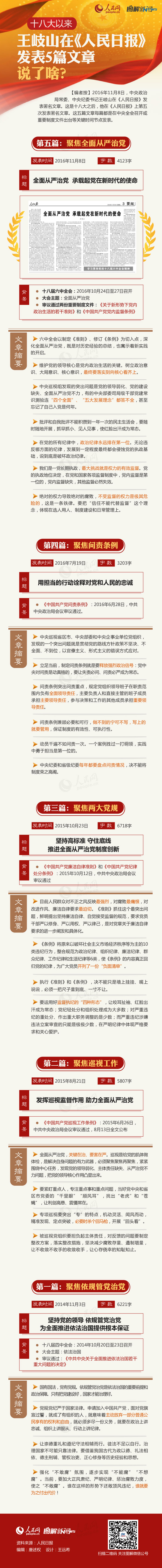 圖解:十八大以來王岐山在《人民日報》發(fā)表5篇文章說了啥?
