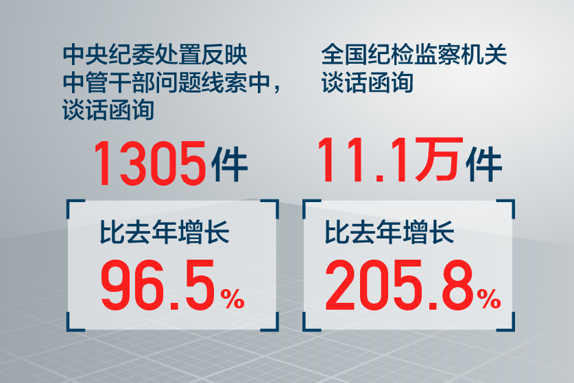 今年1至11月,全國(guó)紀(jì)檢監(jiān)察機(jī)關(guān)談話函詢11.1萬件次,比去年同期增長(zhǎng)205.8%;