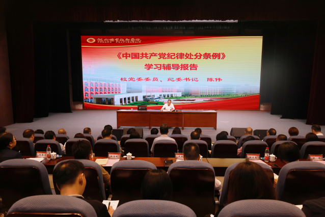開班動(dòng)員講話后,校黨委委員、紀(jì)委書記陳偉作《中國(guó)共產(chǎn)黨紀(jì)律處分條例》學(xué)習(xí)輔導(dǎo)報(bào)告。他從正確認(rèn)識(shí)學(xué)習(xí)《條例》的重大意義、準(zhǔn)確把握《條例》修訂的主旨要義、《條例》修訂的突出特點(diǎn)以及部分條文的學(xué)習(xí)等四個(gè)方面,對(duì)《條例》做了全面解讀和具體講解,報(bào)告主題鮮明、內(nèi)容豐富,既有理論概括,又援引典型案例,為與會(huì)黨員干部上了一堂生動(dòng)精彩、發(fā)人深省的黨紀(jì)學(xué)習(xí)教育專題輔導(dǎo)課。
