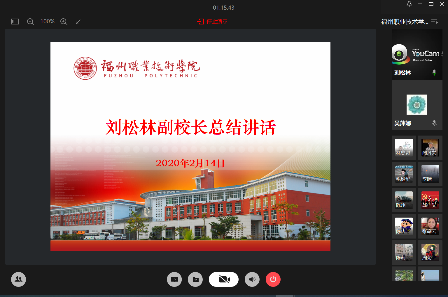 為堅(jiān)決貫徹黨中央的戰(zhàn)略決策部署,全面落實(shí)全省教育系統(tǒng)新型冠狀病毒疫情防控工作視頻會(huì)議精神,切實(shí)做好“開學(xué)延期控疫情,網(wǎng)絡(luò)學(xué)習(xí)不延期”各項(xiàng)準(zhǔn)備工作,我校于2月14日上午召開網(wǎng)絡(luò)教學(xué)工作會(huì)議,副校長(zhǎng)劉松林、各二級(jí)學(xué)院院長(zhǎng)和教學(xué)秘書、教務(wù)處、產(chǎn)學(xué)研與實(shí)訓(xùn)中心、現(xiàn)代教育技術(shù)中心等共計(jì)52人參加了會(huì)議,會(huì)議由教務(wù)處閆丹文處長(zhǎng)主持。