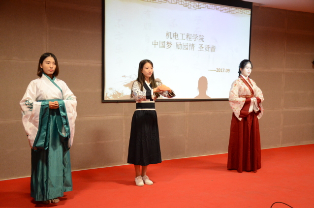 2017年9月27日,機(jī)電工程學(xué)院在學(xué)術(shù)報(bào)告廳成功舉辦以“中國(guó)夢(mèng) 勵(lì)園情 圣賢音”為主題的優(yōu)秀傳統(tǒng)文化經(jīng)典誦讀活動(dòng)。