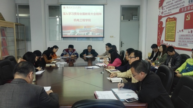 11月28日下午,機(jī)電工程學(xué)院組織全院教職工專題學(xué)習(xí)貫徹習(xí)近平總書記在全國(guó)教育大會(huì)重要講話精神的活動(dòng)。