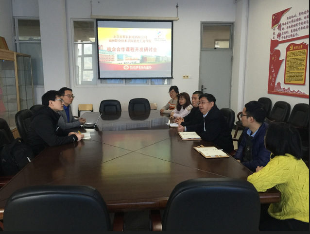 2019年3月26日上午,由北京發(fā)那科機電有限公司與福州職業(yè)技術學院機電工程學院相關教師共同研討課程開發(fā)、教材開發(fā)項目。企業(yè)培訓課總監(jiān)高志國、專業(yè)建設方案總監(jiān)趙小宣以及學院黨政領導、專業(yè)主任參加會議。