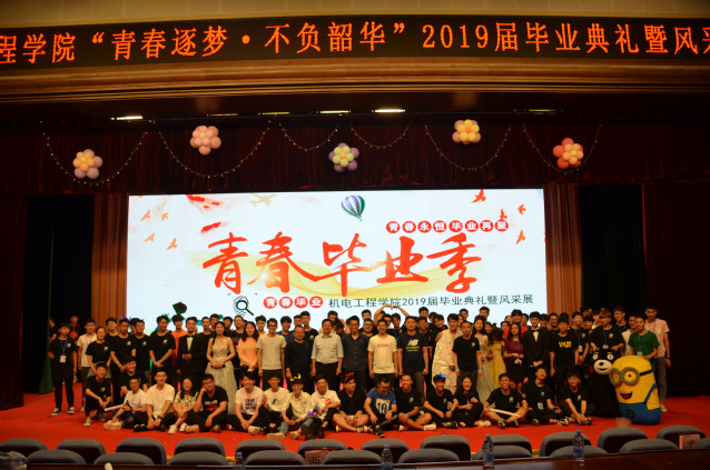 三載時光飛逝過,一朝歡聚話真情。又到一年畢業(yè)時,為了歡送2019屆畢業(yè)生,展示機電工程學院學子風采,我院于2019年5月30日晚在校五百人禮堂成功舉辦了“青春逐夢·不負韶華” 2019屆畢業(yè)典禮暨風采展,院長陳天凡、黨總支副書記李平、教師代表、畢業(yè)生代表和在校學生近500人共同參加了本次活動。