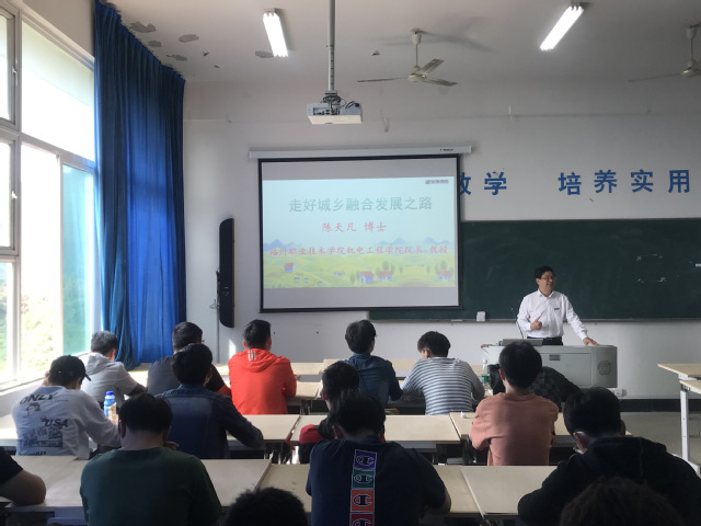 10月30日上午,機(jī)電工程學(xué)院陳天凡院長(zhǎng)以“走好城鄉(xiāng)融合發(fā)展之路”為主題為2017級(jí)學(xué)生上了一堂深入淺出的形勢(shì)與政策課。