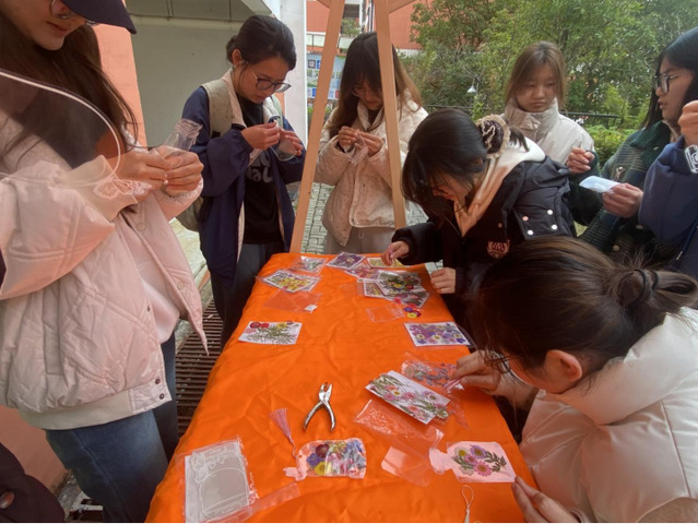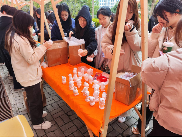 現(xiàn)場設置了創(chuàng)意手工、知識闖關、自定義標簽三大互動區(qū)。在“她”的巧手專區(qū),女生們用扭扭棒編織鑰匙扣、繪制彩色石膏娃娃、制作干花書簽、手寫書簽,不少同學還將作品與陌生人交換,收獲友誼與驚喜。“她”的智慧火花區(qū)以開放式問答形式普及女性權益知識,答對者獲贈手寫祝福卡與鮮花。在“她”的標簽展板前,女生們用便利貼寫下“我的人生我做主”等宣言,近百張便利貼匯成一片“勇氣花海”。
