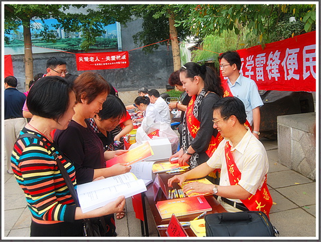2012年10月27日下午,福州市社區(qū)大學(xué)與福州市終身教育促進(jìn)委員會(huì)辦公室、福州市教育局機(jī)關(guān)黨委與福州鼓樓區(qū)南街街道及靈響社區(qū)黨委聯(lián)合組織本單位廣大黨員干部、青年志愿者、入黨積極分子等計(jì)50多名志愿者,在三坊七巷的光祿坊公園廣場(chǎng)舉辦一場(chǎng)大型的學(xué)雷鋒青年志愿服務(wù)活動(dòng),內(nèi)容包括人口計(jì)生、優(yōu)生優(yōu)育、專家義診、禁毒展板、終身教育、音樂普及、法律援助、心理咨詢等。他們還向過往群眾分發(fā)“終身教育條例”,宣傳社區(qū)教育、終身學(xué)習(xí)的重要意義。本次活動(dòng)受到廣大市民的歡迎和好評(píng)。