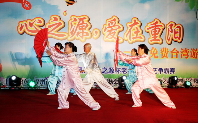 2013年10月13日晚,由福州市社區(qū)大學(xué)、福建省蜂產(chǎn)品協(xié)會(huì)聯(lián)合主辦,福州心之源生物制品有限公司承辦的“秀出我風(fēng)采”――“心之源”杯中老年團(tuán)體才藝爭(zhēng)霸賽在鼓樓區(qū)楊橋永輝超市門(mén)口舉辦。 當(dāng)天是傳統(tǒng)佳節(jié)重陽(yáng)節(jié),是屬于老年人的節(jié)日。晚7點(diǎn), “心之源”杯老年團(tuán)體才藝爭(zhēng)霸賽在民族舞《我的祖國(guó)》中拉開(kāi)序幕,本次臺(tái)上參賽的選手都是中老年人,現(xiàn)場(chǎng)吸引了大量的市民朋友駐足觀(guān)看,流連忘返。 參加本次比賽的共有七支隊(duì)伍,有民族舞、夫妻越劇唱段、太極功夫扇、街舞等表演形式。經(jīng)過(guò)激烈角逐。最后,烏山社區(qū)選送的民族舞蹈《邊寨歡歌》、楊橋河南社區(qū)選送的《太極功夫扇》、閩侯尚干洋中村選送的街舞《我的玫瑰卓瑪拉》分別獲得一、二、三等獎(jiǎng)。 福州新聞網(wǎng)報(bào)道本次活動(dòng)。